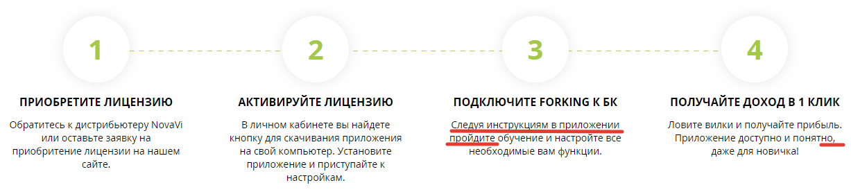 Начать заработок с компанией клиент сможет после выполнения 4 шагов. Этапы включают: