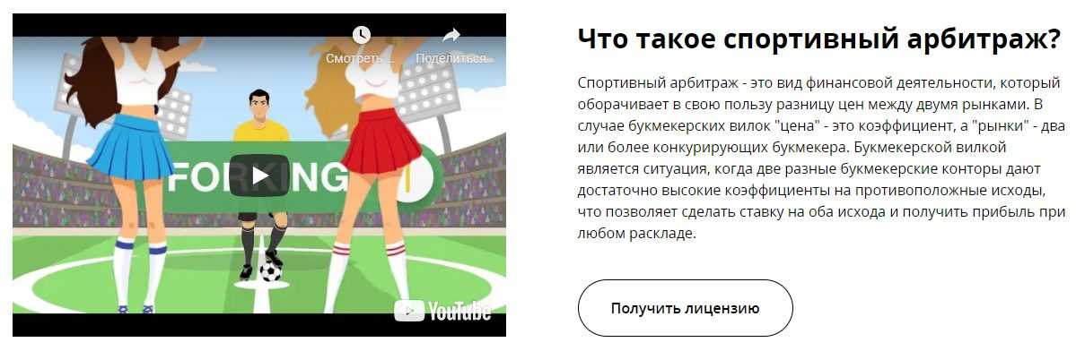 Разработчики проекта forking com постарались объяснить суть спортивного арбитража. Указанное понятие не является видом финансовой деятельности. Это разрешение споров между командой и судьями. Арбитраж в беттинге – ситуация, при которой пари на взаимоисключающие исходы приведет к выигрышу. Разработчики сайта почему-то утверждают о 2 исходах. В вилку можно включать события с 3 взаимоисключающими результатами (ничья, П1 или П2). Ставки придется распределять по 3 компаниям.