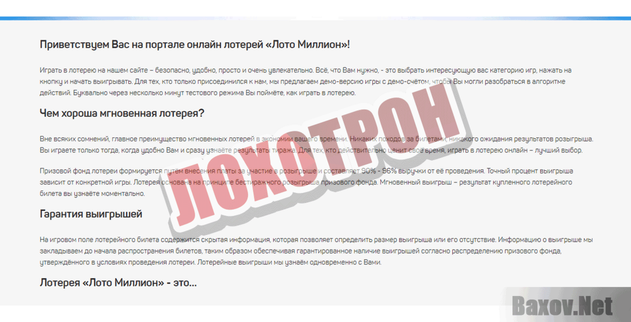 И теперь рассмотрим сам проект во всех его подробностях. Начать, пожалуй, стоит с слишком сомнительного рассказа администрации о своем детище. Победа гарантируется каждому, все билеты якобы выигрышные, тогда в чем выгода самой конторы, если все будут выигрывать, то сам ресурс останется без копейки? Что это за якобы игра в благотворительность? Такого не бывает, а потому и вызывает кучу сомнений.