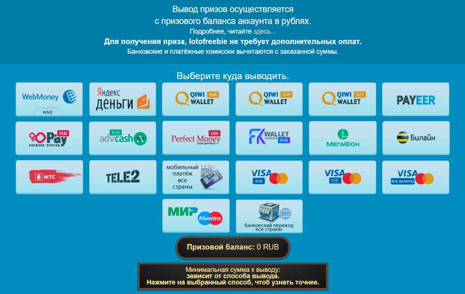 Электронные деньги: WebMoney, ЯндексДеньги, Qiwi, PAYEER, OOOPay, OKPAY, PayPal, AdvCash, FKWallet, баланс мобильного телефона (призы суммой не более 200 000 рублей)