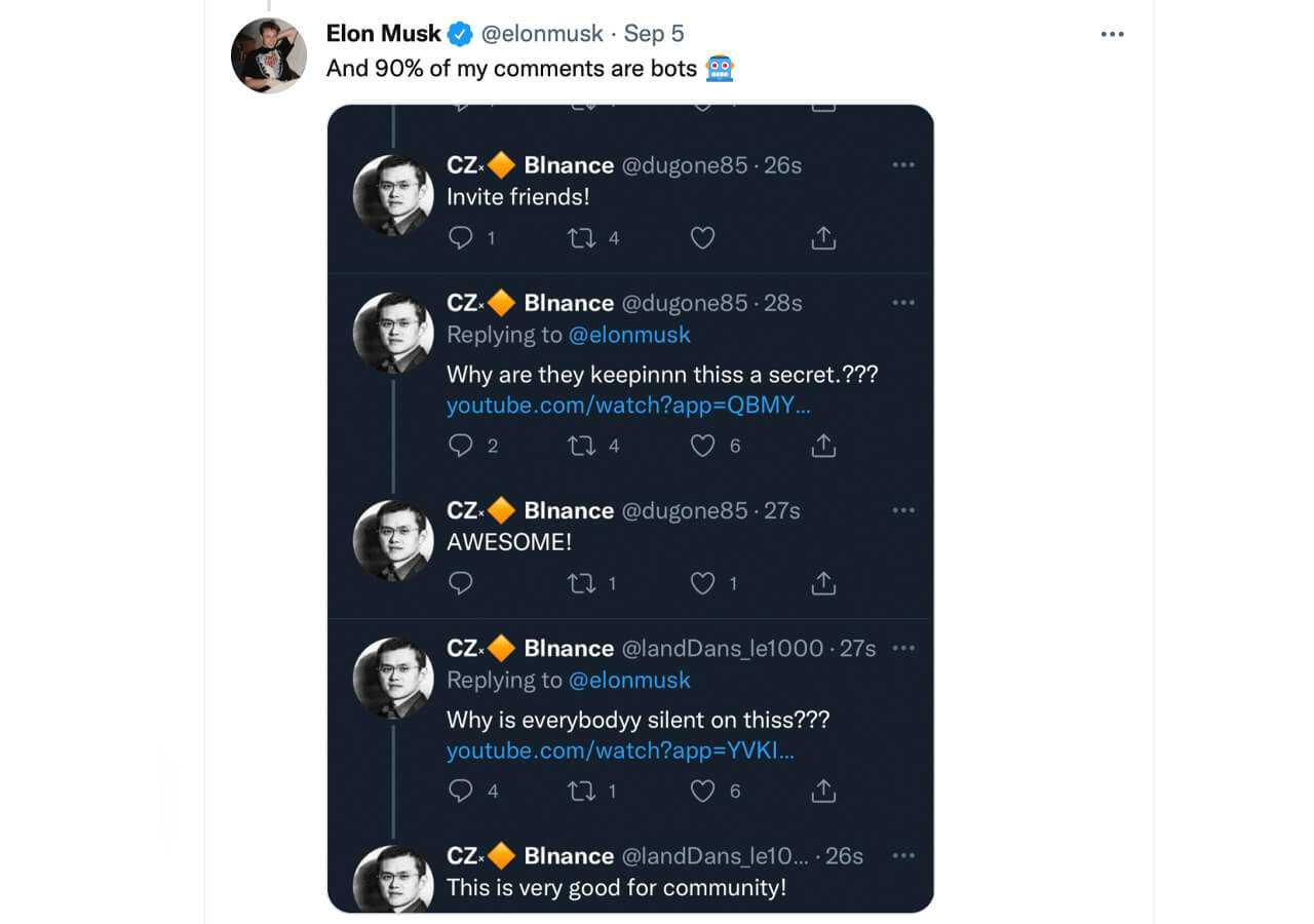 Сообщение мошенников, которые выдают себя за руководителя Binance Чанпена Чжао. Ими поделился Илон Маск