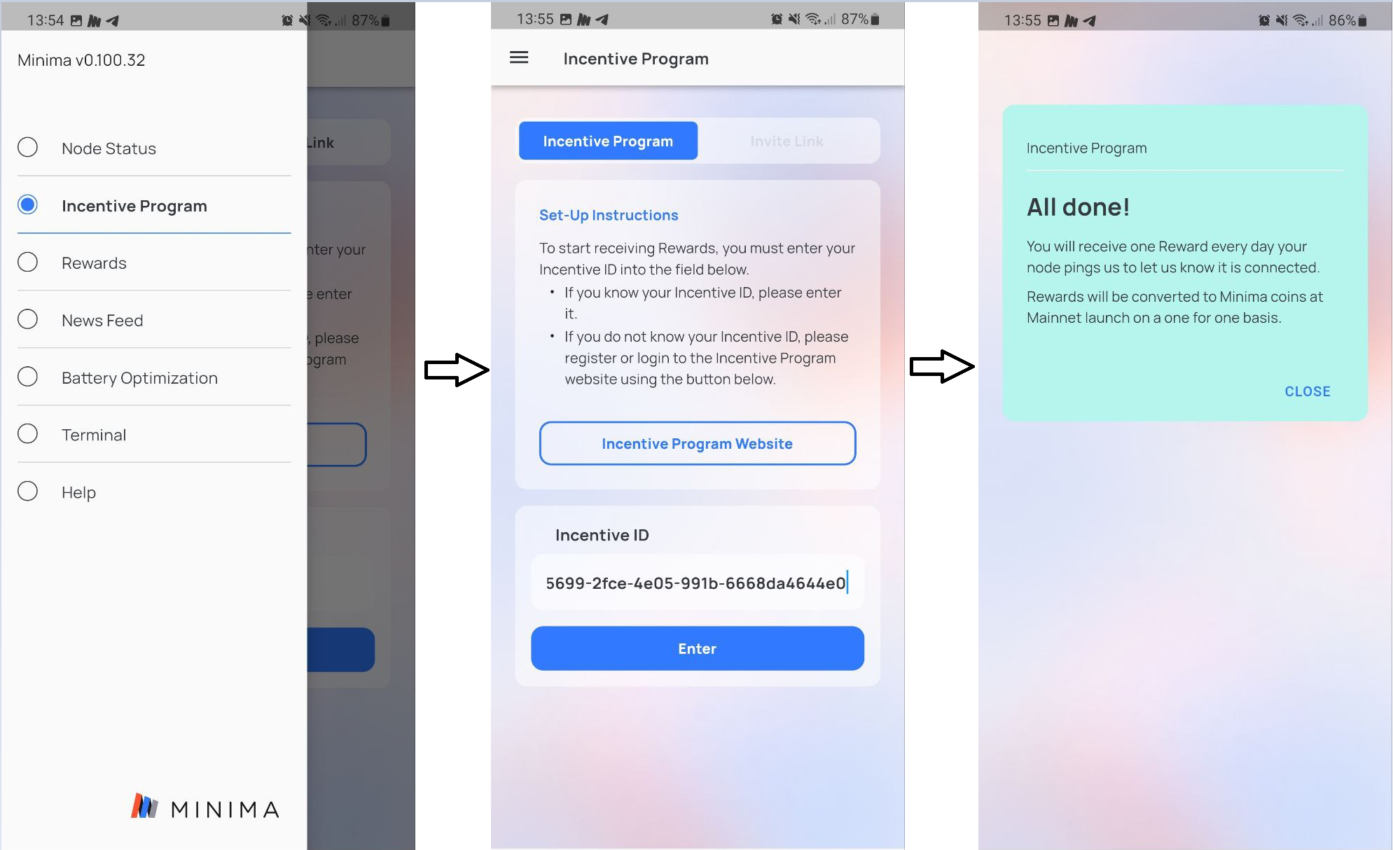 ⠀Для получения наград необходимо привязать своё устройство к Minima аккаунту. Для этого необходимо выполнить общие действия, а затем действия в зависимости от вида ноды.