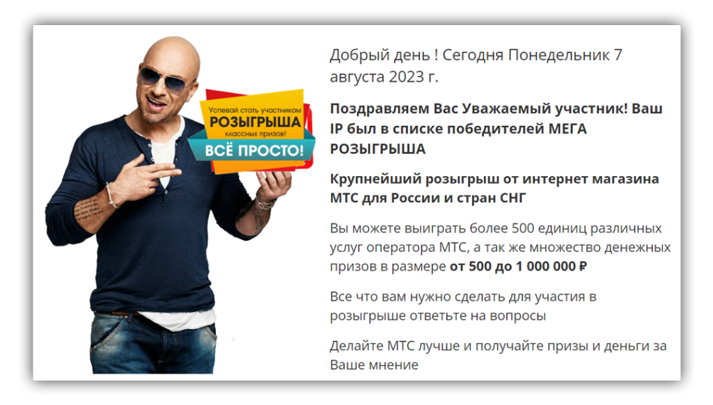 Как распознать легко понять, что данный розыгрыш призов от МТС лохотрон: