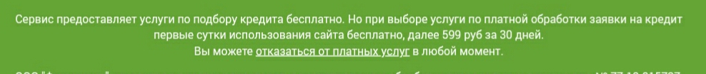 Система передает заявку клиента своим партнерам. Независимо от результатов ее рассмотрения, с карты клиента списывается плата за обслуживание. Затем система предоставляет подписчикам рекламные материалы об актуальных предложениях кредиторов.