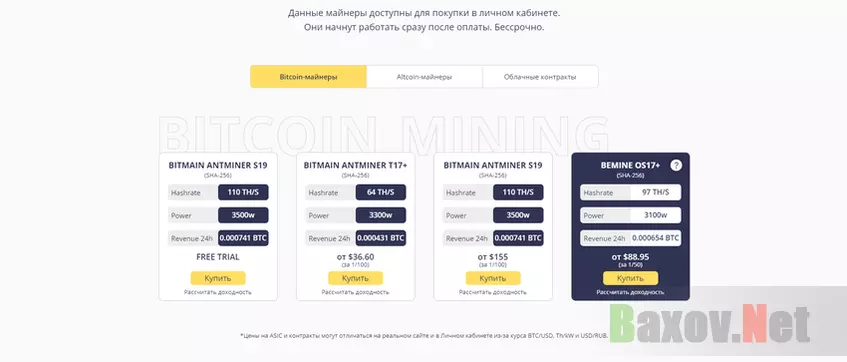 Что касается других разделов облачного майнинга: