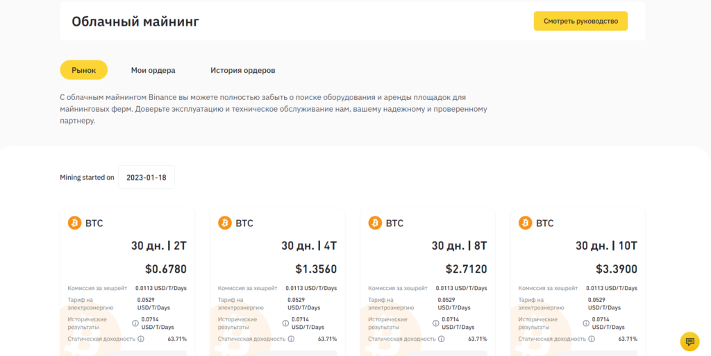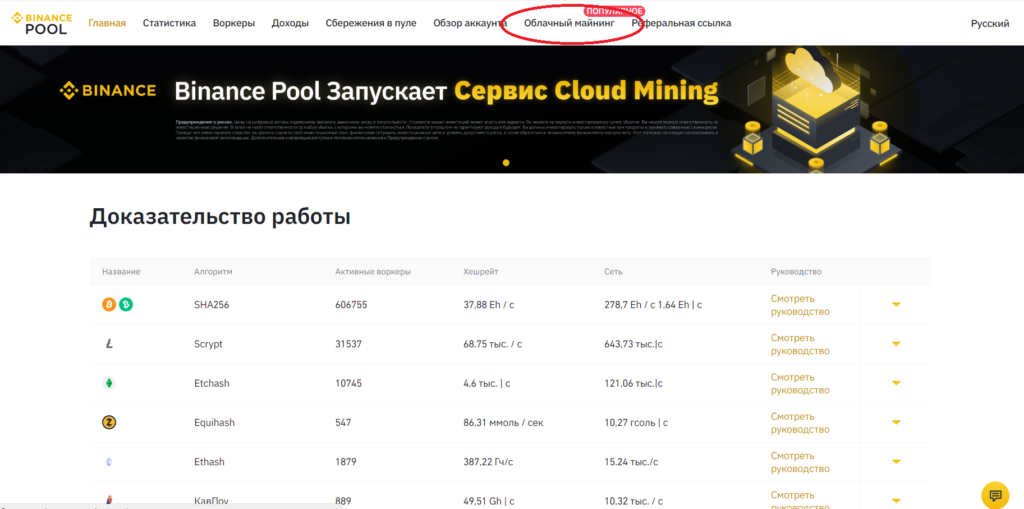 Облачный майнинг на Binance