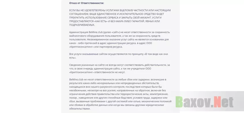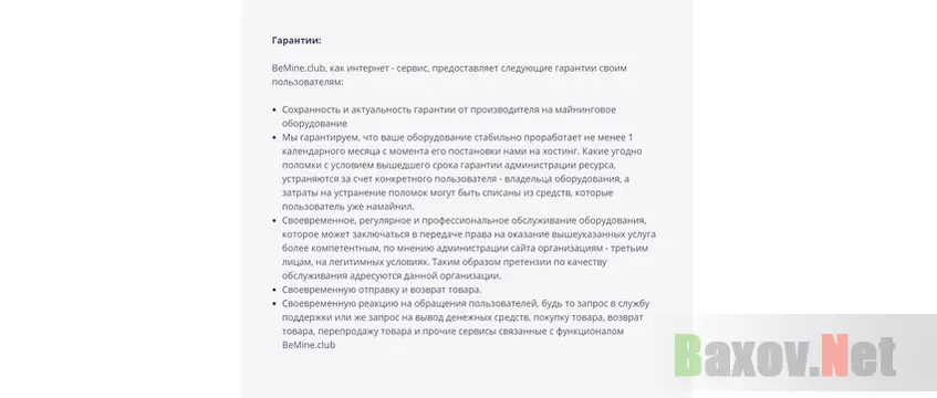 Так сам BeMine гарантирует или нет работу оборудования? Нет. Ибо: