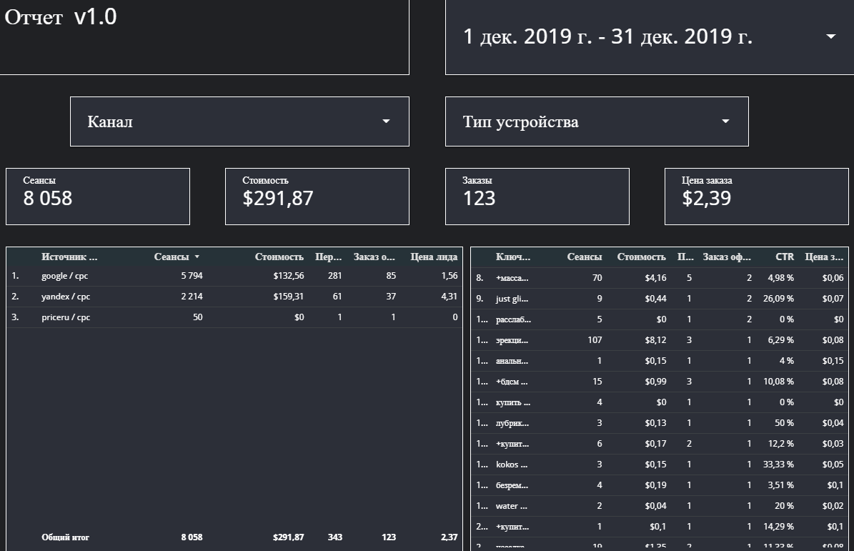 После анализа полученных данных решили отключить часть кампаний, так как они приносили дорогие конверсии и тратили значительную часть бюджета (особенно это касалось Яндекс.Директа).