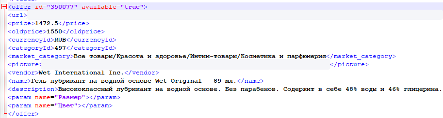 При первой же генерации стало понятно, что в фиде отсутствуют уточняющие данные, из-за этого лингвогенертор не мог охватить все запросы. Поэтому пришлось немного доработать выгрузку, после чего в YML-фид уходили следующие данные: