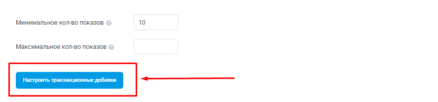 Как мы уже упомянули выше, среди новых функций лингвогенератора появилась возможность настроить транзакционные добавки (купить, заказать, с доставкой и т. д.). Добавить их можно на этапе «Правила генерации», кликнув на «Настроить транзакционные добавки»: