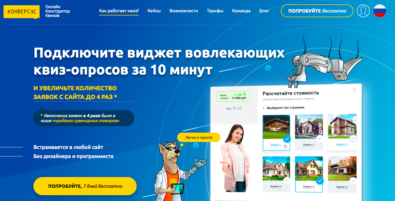 А если хочется создать индивидуальный квиз, но нет времени самостоятельно его продумывать, на Конверсусе можно заказать создание квиза под ключ. Специалисты сервиса сами составят вопросы и ответы для теста.
