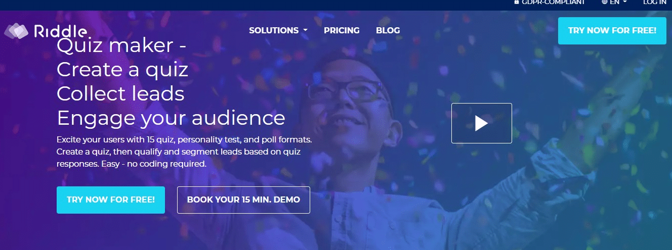 Создатель викторин с загадками особенно известен тем, что собирает адреса электронной почты. Его совместимость с программным обеспечением для работы со списком адресов электронной почты, таким как MailChimp, позволяет вам собирать данные от ваших лидов и отправлять их в другое программное обеспечение. Итак, если вы являетесь малый бизнес владелец или предприниматель, Риддл может быть для вас.