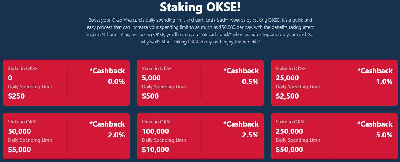 - Получение дохода от стейкинга токенов с увеличением ежедневных лимитов трат по карте.