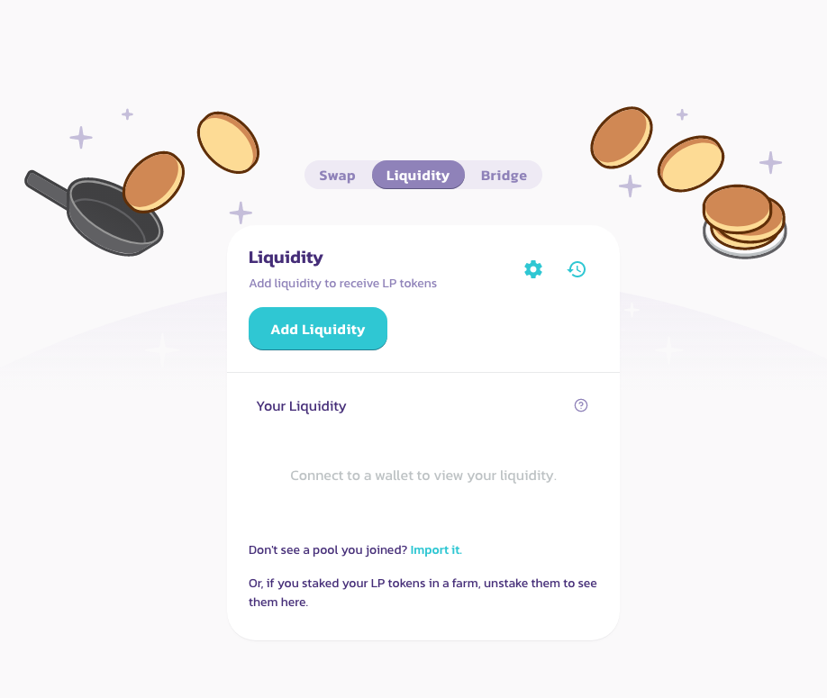 Чтобы добавить ликвидности в обменный пункт PancakeSwap, у вас должны быть два актива, которые являются допустимой парой ликвидности, например CAKE и USDT. В том же разделе «Торговля», что и «Обмен», есть опция «Ликвидность». После того, как вы нажмете на нее и разблокируете свой кошелек, выберите два актива, которым вы хотите предоставить ликвидность (суммы должны быть эквивалентны, например, 100 долларов США в CAKE + 100 долларов США в USDT), а затем нажмите «Предоставить». Как только вы подтвердите транзакцию, вы получите токены Liquidity Pool (LP) в свой кошелек. Зайдите в «Ферма», найдите пару фишек, для которых у вас есть фишки, а затем добавьте их в пул, чтобы начать зарабатывать награды.