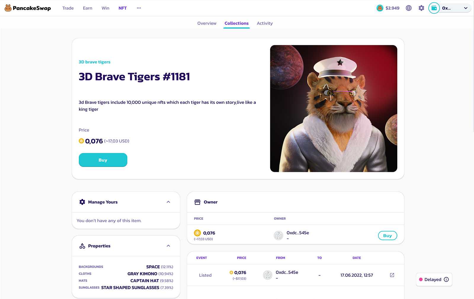 Пользователи могут создавать профили на PancakeSwap Finance. Активность вознаграждается карточками. Это реальные BEP-721 токены в сети BSC. Как минимум, эти NFT можно поставить в качестве аватара профиля на PCS, или продать.