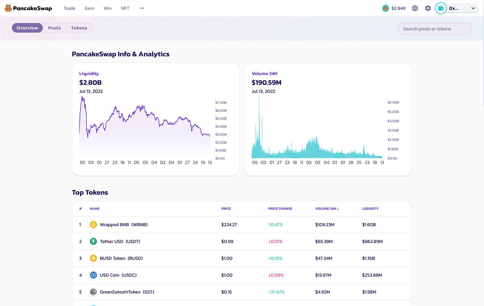 На момент публикации PancakeSwap является второй крупнейшей биржей в пространстве децентрализованных финансов. Поскольку PancakeSwap работает на блокчейне Binance Chain, комиссии на транзакции практически отсутствуют.