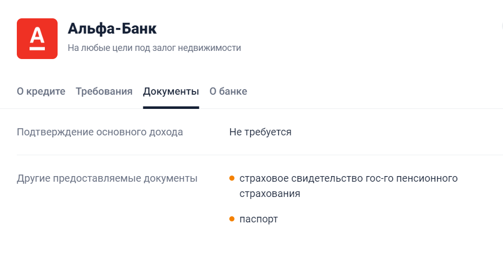 Документы для оформления кредита в Альфа-Банке