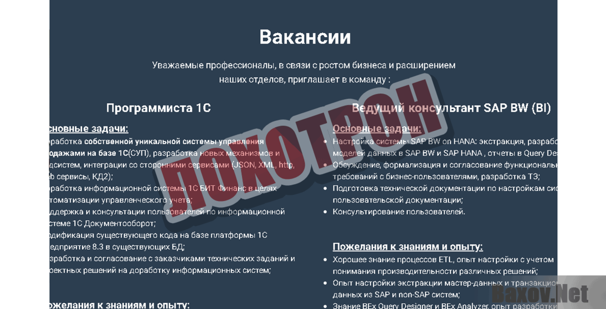 Для правдоподобности сайта мошенники выделили место и для вакансий. Естественно никаких вакансий нет