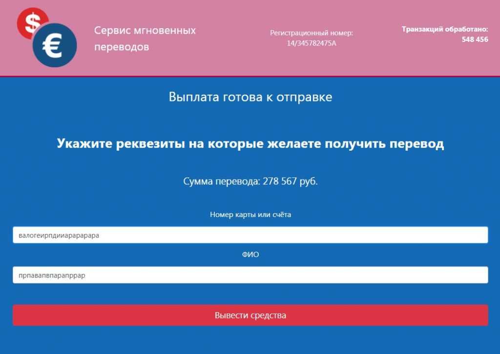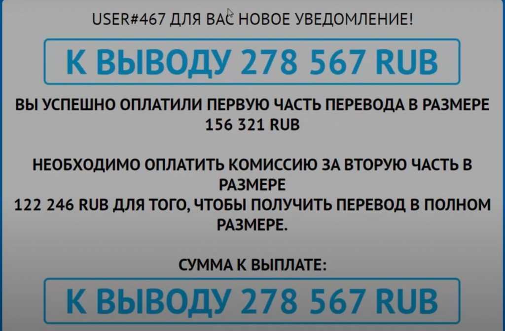 Пишут, что на наше имя (ФИО) отправлен перевод на сумму 278 567