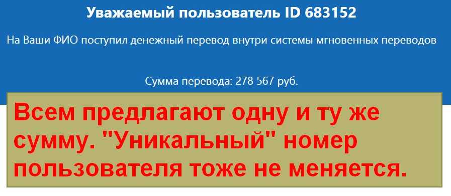информация (номер перевода, сумма, наш ID в системе), это 100% значит, что перед нами обман.