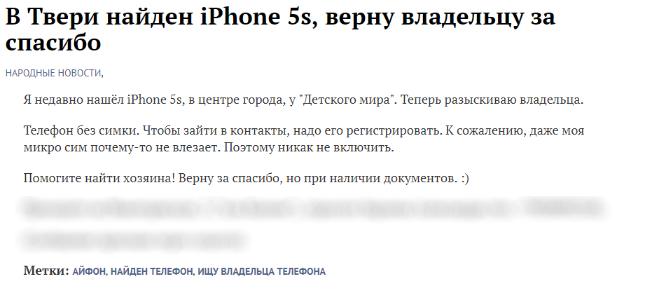 Дальше дело остается за малым. От жертвы требуется заплатить небольшое вознаграждение за старания нашедшего телефон.