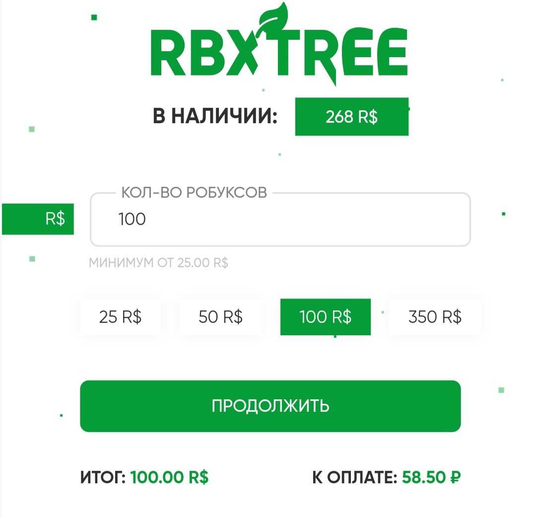 Для получения бесплатного набора робаксов нужно постоянно участвовать в розыгрыше в одной из социальных сетей, мониторить ситуацию на самом сайте. У Rbxtree очень приемлемый курс для покупки робаксов.