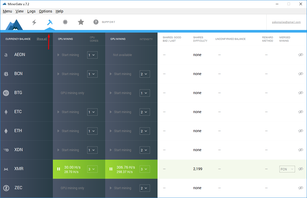 MinerGate не майнит? Проверьте, правильно ли вы ввели почту в программе или обратитесь в техподдержку.