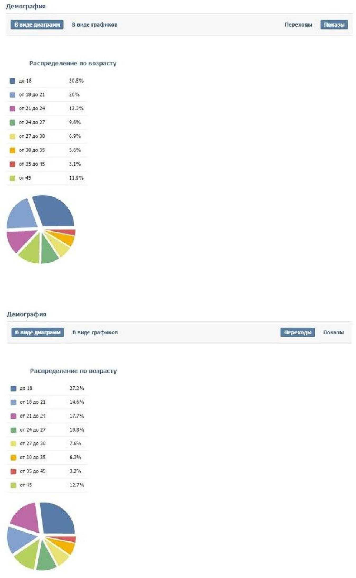Ниже статистика по возрастам для данного объявления. Если сравнить эти две диаграммы то видим что лучше всего кликали мужчины от 21 и старше. Скорее всего это связано с тем, что люди по-младше 21 вряд ли знакомы с такой игрой как «Казаки».