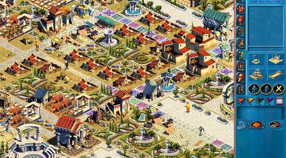 В этой игре для развития города обязательным условием является строительство храма. Оно позволяет привлечь больше жителей и влияет на общие настроения в поселении. Существует несколько видов жилья, как для обычных крестьян, так и для зажиточных. Крестьян можно привлекать для службы в армии и защите поселения от набегов со стороны. Большую роль играет мифология. Античные боги могут влиять на устройство жизни, помогать горожанам или наоборот делать их жизнь сложнее, уничтожая посевы или усугубляя природные условия. Для обеспечения ресурсами необходима внешняя торговля с соседними городами, заключение взаимовыгодных союзов.