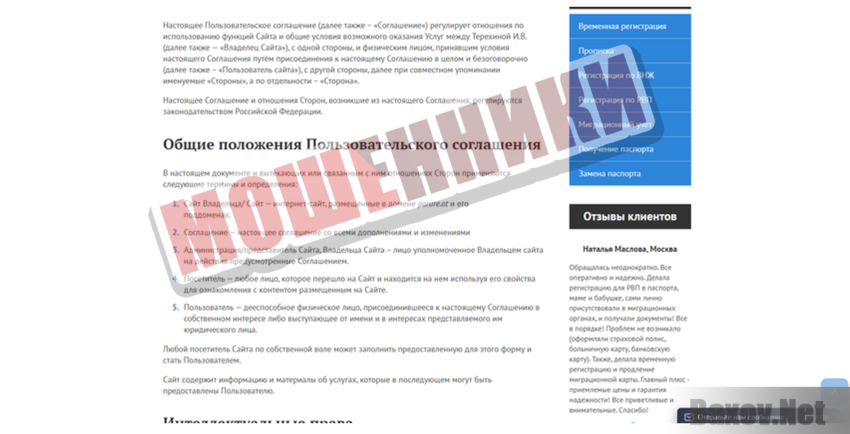 Кто такая Терехина И.В.? Индивидуальный предприниматель? Адвокат? Представитель компании? Мошенники нам не предоставили ни её паспортных данных, ни ИНН. С таким же успехом они могли написать, что услуги оказывает какая-нибудь Иванова, Петрова или Сидорова.
